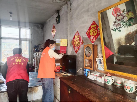 2.興隆村,高齡困境老人石秀玲家,老人已經(jīng)85歲了,還患有腿疼、心臟病、眩暈癥、高血壓,需要常年吃藥維持生命。老人有兩個兒子,老大楊樹發(fā),患有精神障礙一直沒有結(jié)婚,一直由這位可憐的母親來照顧,有時犯病還會毆打母親。還有另外二兒子年輕喪偶,常年待在外地打工。從沒有回來看望過老母親。家里面一片陰霾,我們的到來猶如一絲光,給他們帶來了慰問物資,還幫助老人收拾屋子打掃衛(wèi)生。老人許久沒有出現(xiàn)的笑容也映在了臉上。